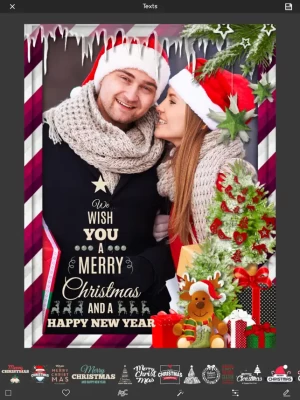 Get a huge collection of charming New Year and Christmas photo frames and stickers with Christmas Photo Editor. You will definitely find an layout that suits your needs among 20+ beautifully designed templates. Make personalized Christmas cards easily and surprise all your friends during the holiday season!