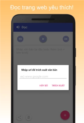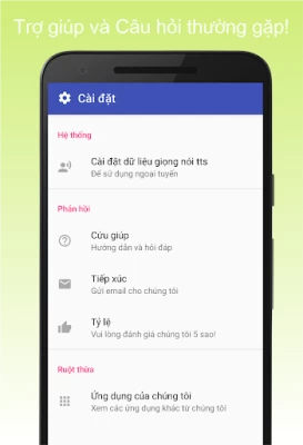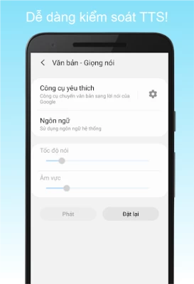 * Chúng tôi thực sự khuyên bạn nên cài đặt công cụ chuyển văn bản thành giọng nói (TTS) của google. Ứng dụng của chúng tôi tương thích tốt nhất với nó.