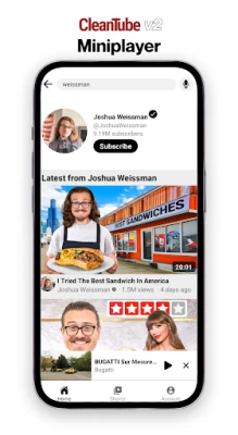 CleanTube is an ad free app that lets you listen to music, and watch videos from your favorite channels in high-quality (up to 8K), and watch videos on top of your screen while using other apps..