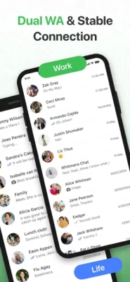 The app allows you to open the same account on different devices or log into two WA accounts simultaneously. Whats Dual for WA offers a strong connection and avoids unexpected logouts.