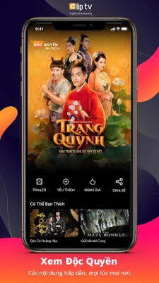 Ứng dụng Clip TV Truyền hình internet – Xem truyền hình trực tuyến đa nền tảng, với hàng ngàn nội dung truyền hình, phim truyện và các chương trình giải trí hấp dẫn 100% bản quyền. Thiết kế hiện đại, giao diện thân thiện, dễ sử dụng, tốc độ nhanh và ổn định, chất lượng chuẩn HD được tối ưu cho các dòng điện thoại thông minh để có được trải nghiệm tốt nhất nhất. Bạn chưa là thành viên? Hãy tải và tận hưởng 30 ngày trải nghiệm không giới hạn Clip TV ngay nhé!