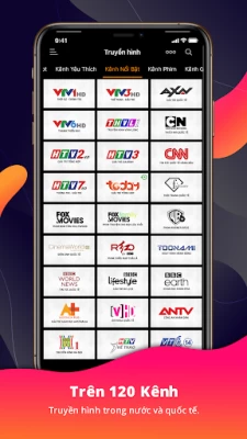 • 100+ kênh truyền hình trong nước (VTV, HTV, HTVC, VTC, Hà Nội, Vĩnh Long - THVL, Let’s Việt, Today TV, Yeah 1!, kênh đại phương…) và kênh quốc tế (Fox, AXN, Warner TV, Red by HBO, CN, Fashion TV, CNN, BBC, Bloomberg, Cinema World, Toonami, Paramount, DW…)