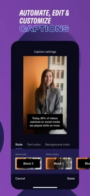Create videos made for mobile in minutes – no experience needed. Record clips, set video duration, automate captions, make easy edits, and customize your video content with unique fonts, colors, filters, and even your own logo.