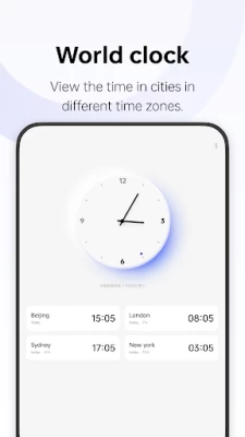 - Add cities in different time zones to view local times at a glance.