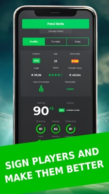 - Sign players for your squad using the transfer market. Negotiate with them to get the best deal for your team.