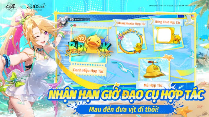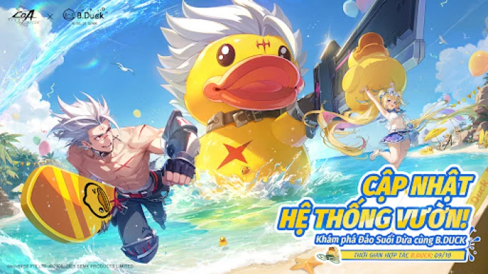 Hợp tác Tinh Thể Atlan × B.Duck chính thức ra mắt! Vịt Vàng khổng lồ xuất hiện trên bản đồ, một thí sinh mới xuất hiện trên đường đua Vua Ốc Tốc Độ. Hãy đến trải nghiệm niềm vui ngập tràn sự dễ thương ngay bây giờ!