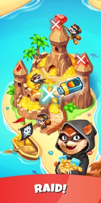 Tired of spinning the slot machine in order to gain coins? Attack and raid enemy villages or friends to loot and steal enough coins to upgrade your village and build your coin empire! Get revenge and attack other raccoon pirates in order to loot and steal coins or perform a perfect raid in order to loot and steal extra coins! Defend your village and protect your coin empire by blocking attacks and gain additional experience points to put towards your village so that your coin empire can come out on top!