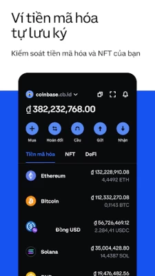 Coinbase Wallet là chìa khóa của bạn cho những gì tiếp theo trong tiền mã hoá. Coinbase Wallet là một trình duyệt và ví web3 tương thích với Ethereum và Solana cho phép bạn kiểm soát tiền mã hóa, NFT, hoạt động DeFi và tài sản kỹ thuật số của mình.