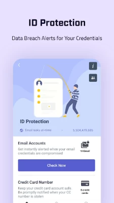✔ Identity Theft Protection - Identity theft protection lets you define your email addresses, credit cards and other sensitive information, and get notified whenever they are breached and shared on the dark net
