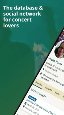 • Your Concert Diary: Add all of the concerts and festivals you've been to. Upload photos/videos, save notes, track your favorites, and make a future bucket list.