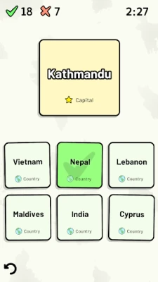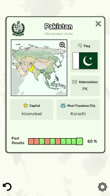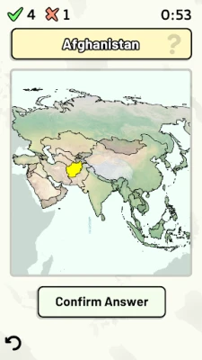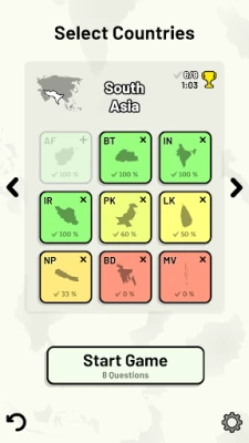 Customizable quizzes allow you to choose which Asian countries to test, as well as the topic. Past results for each country are displayed to highlight your progress at each topic.