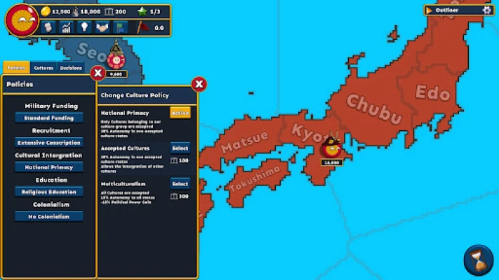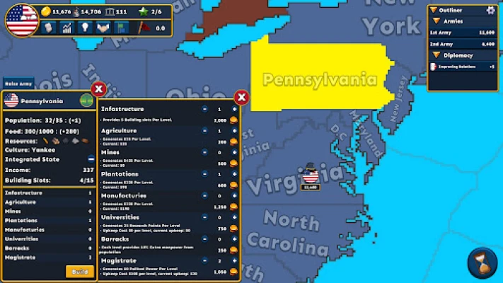 Form alliances and take territory from your enemies or subjugate them.