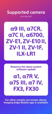 ■ Please refer to the "Support Page" for the connection process and list of supported models.https://www.sony.net/ca/help/camera/