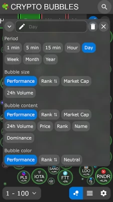 ❖ View every bubble directly on CoinMarketCap, Binance, Kucoin, Bybit, GateIO or Coinbase with a single click