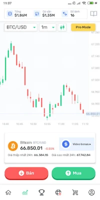 Với ứng dụng của chúng tôi, bạn sẽ không thể mua hoặc bán tiền crypto như trên thị trường chứng khoán crypto thông thường. Ở đây, bạn chỉ cần suy đoán về giá trị của tiền crypto là tăng hay giảm. Đây được gọi là giao dịch Forex (Thị trường ngoại hối) - giao dịch dựa trên sự chênh lệch tỷ giá hối đoái của các loại tiền crypto.