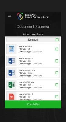 Document scanner - helps locate locally stored documents on your device that may contain sensitive information, such as social security and bank account numbers.