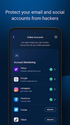 > Dark web monitoring for your breached passwords and personal information, keeping you informed if your information is compromised.