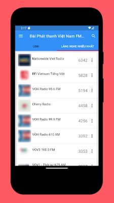 Ứng dụng nghe đài từ Việt Nam có tại đây! Bây giờ bạn có thể nghe các đài phát thanh trực tiếp bằng điện thoại di động có kết nối Internet của toàn Việt Nam, tất cả đều có ở đây. Thậm chí còn có các đài phát thanh trực tiếp ở Việt Nam, như Hà Nội và các thành phố khác của Việt Nam.
