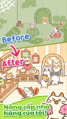 🐾 Tính năng nổi bật 🐱 Thuê và huấn luyện các nhân viên mèo dễ thương 🍳 Nấu các món ăn ngon từ nhiều nguyên liệu khác nhau 🎨 Trang trí nhà hàng với nội thất dễ thương 💰 Tự động hóa cửa hàng để kiếm tiền ngay cả khi offline 🐾 Mở khóa công thức mới và phục vụ nhiều khách hàng hơn