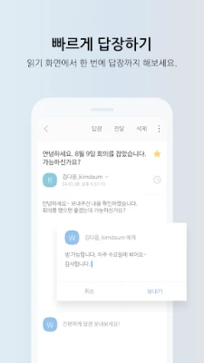 읽기 화면에서 한 번에 답장까지 해보세요.