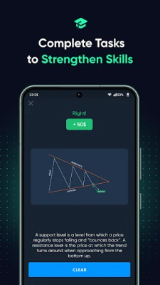 🏅 Unlike the majority of other stock apps, this one comes with an unlimited demo budget. Take quizzes to earn virtual money and use it on simulator without spending a single dollar. Obtain real-world experience in the stock market demo that supports all kinds of assets and uses live charts!