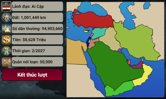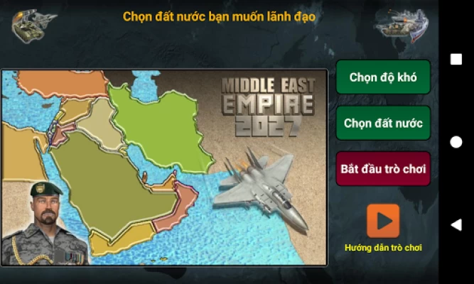 Trở thành Tổng Tư Lệnh vĩ đại của Trung Đông trong trò chơi chiến lược chiến tranh cuốn hút này. Chọn quốc gia của bạn (Ai Cập, Ủy ban Palestin, Iran, Lebanon, Syria, Thổ Nhĩ Kỳ, Jordan, Iraq, Kuwait, Ả Rập Saudi, Các Tiểu vương quốc Ả Rập Thống nhất, Yemen, Oman, Qatar, Bahrain, Síp hoặc Israel) và đối mặt với kẻ thù trí tuệ nhân tạo thông minh.