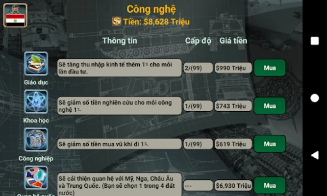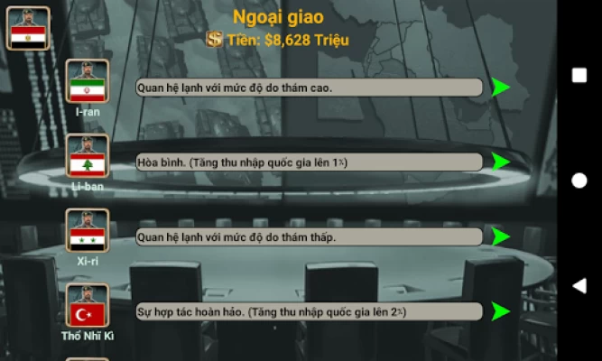 * Theo dõi tin tức thế giới (Kinh tế, Quan hệ, Gián điệp và Chiến tranh).