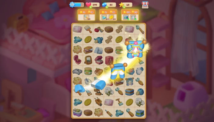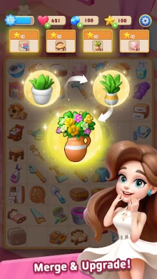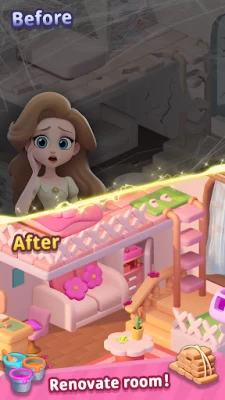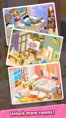 Merge and combine two identical elements in the puzzle game board to create new items and tools to renovate variety rooms such as living room, bedroom🛏️, kitchen, garden🌺 and greenhouse🌲. After merging two same objects, you will receive tools used to unlock and upgrade every piece of furniture and corner of rooms, renovate and paint homes or mansions🖼️🏙️. By complete the process of makeover or redesigning spaces, enjoy the relaxing time and reveal your dream houses.