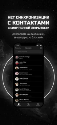 • Нет синхронизации с контактами на телефоне для полной безопасности.