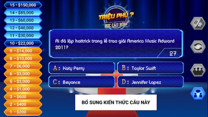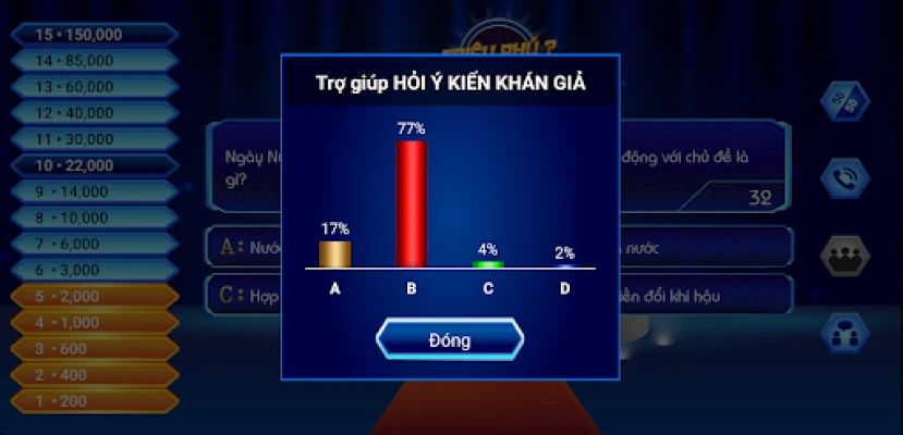 ✔ Mô phỏng giống thực tế 99%, người chơi sẽ có cảm giác như được ngồi trên chiếc ghế nóng của chương trình Ai Là Triệu Phú