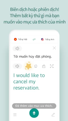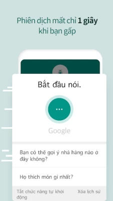 Chức năng ghi nhận bằng giọng nói được kích hoạt ngay khi mở ứng dụng sẽ trở nên rất hữu ích mỗi khi bạn cần được dịch thuật ngay lập tức, ngay cả khi đường truyền internet không ổn định. Bạn có thể xem các câu trước đó thông qua lịch sử ghi nhận giọng nói.