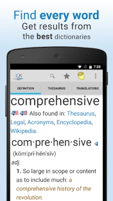 Dictionary Pro is the premium version of The Free Dictionary app, featuring offline dictionary and thesaurus content with NO ads. Here's what you get: