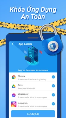 Ứng dụng có thể khóa tất cả các ứng dụng trên thiết bị Android và bảo vệ quyền riêng tư bằng khóa ứng dụng bằng số , Khóa hình và khóa ứng dụng vân tay. Giúp bạn bảo vệ những ứng dụng của mình không sợ người khác xem lén như: Facebook, Line, Whatsapp hay Wechat ....đặt mật khẩu cho ứng dụng.