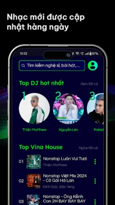 - Hợp tác với những DJ và nghệ sĩ xuất sắc nhất, từ những bài hát hay nhất của Vinahouse Việt Nam đến EDM quốc tế, mỗi bài hát đều có phong cách riêng, độc đáo.