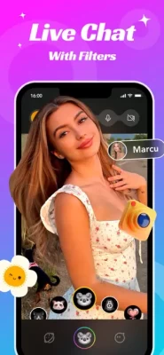 #Live Video Chat with Filters# Experience real conversations through 1-on-1 live video chats, where you can meet and interact with new people instantly. Choose from a variety of filters, add them to your video calls, and have a blast with your friends.