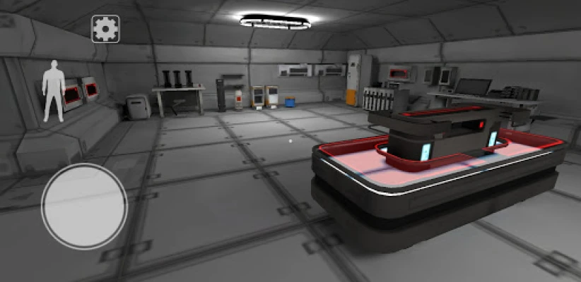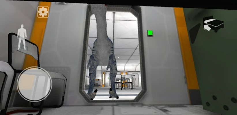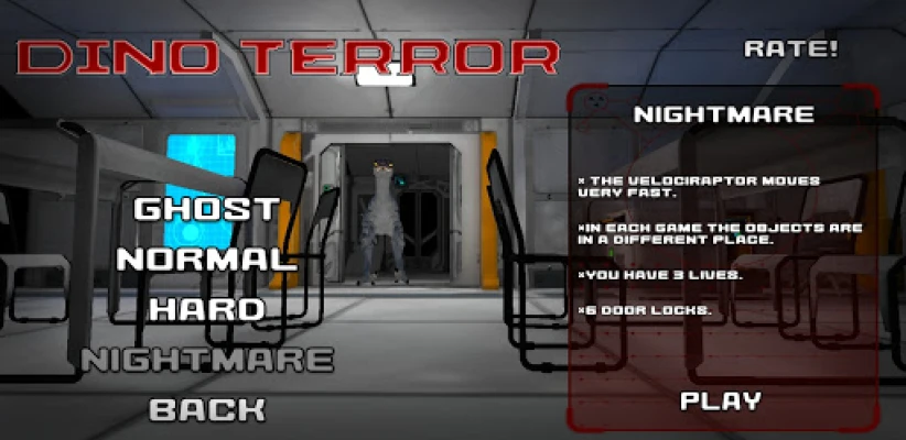 The escape the room style game features an intuitive play and horror game ambiance. The cunning dinosaur can hear any noise and detect any loud movements. You must act slowly and silently to move forward in the escape adventure and find your way through the exit gate. When you reach different doors, you must place your hand on the scanner to enter different horror adventure rooms to hide.