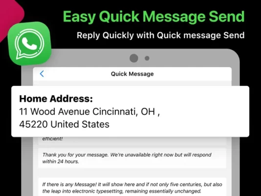 - Save time and effort by saving your most repetitive replies as quick messages to send them on WhatsApp, WhatsApp Business, or text message.