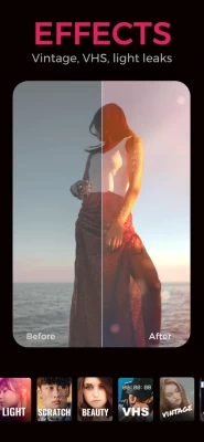 Amazing selection of trendy effects & filters that react to the music: Vintage, Dispo, VHS, Glitch, beauty, and more.Add music from curated lists, change the speed of the video - slow motion or fast forward, adjust tone and even add your personal touch with live touch FX.Easily create endless aesthetic edits.