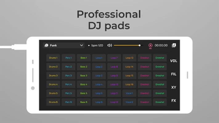 The easy interface was made for you to create a loopy mix. You can launch pads with different loops and one-shots. Apply effects just pressing the pads. Run sample tapping the loop pad. Use the volume faders to make beats louder.
