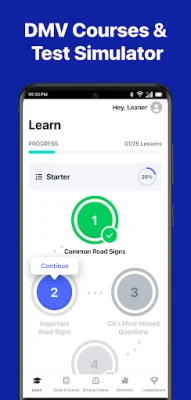 Disclaimer: The application is designed to provide training courses for those learners who prepare for their driver permit tests. This app is not affiliated with and does not represent the DMV or any Department of Motor Vehicles, or any federal, state, county, or city government, or any department, bureau, division, or agency of any governmental body in the United States and it does not replace official state-specific DMV applications.