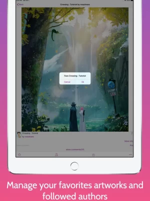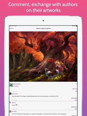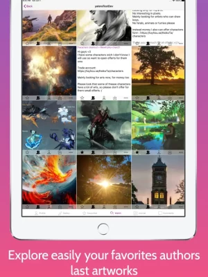 - Follow/watch you favourite artists to get their last creations in your profile watch feed. You will also get their last journal entries to know their events (like a live drawing session)