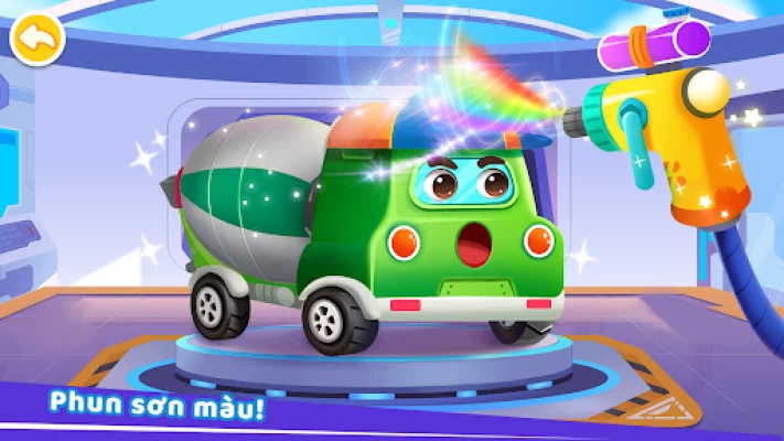 Nhiệm vụ đã hoàn thành. Đừng quên kiểm tra và tu sửa xe tải! Hãy rửa xe và thay cho chúng những chiếc lốp xinh xắn nhé. Sau đó, tặng cho chúng lớp sơn mới. Màu vàng, màu đỏ, màu tím... Chọn màu sắc phù hợp với chúng và thể hiện kỹ năng hội họa của bạn!