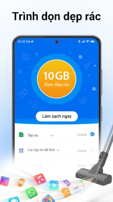 Phone cleaner giúp bạn quét các tệp rác khỏi bộ nhớ điện thoại. Tệp rác là các tệp tạm thời hoặc không sử dụng chiếm dung lượng lưu trữ trên thiết bị của bạn. Junk cleaner quét và hiển thị các tệp rác, APK cũ và các mục không cần thiết khác. Với junk cleaner, bạn có thể dễ dàng quét và dọn dẹp các tệp không mong muốn. Chỉ cần chọn những gì bạn muốn xóa và dọn dẹp bộ nhớ trên điện thoại của mình.