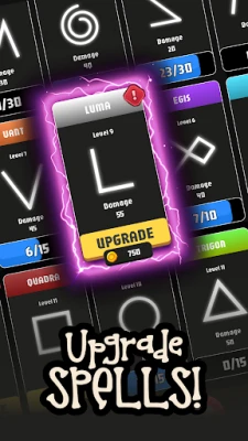 Forget tapping – this game is all about drawing! Trace unique glyphs to trigger fireballs, ice blasts, lightning strikes, and more! Each spell has its own pattern — master them all to maximize your damage.