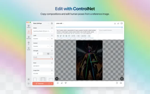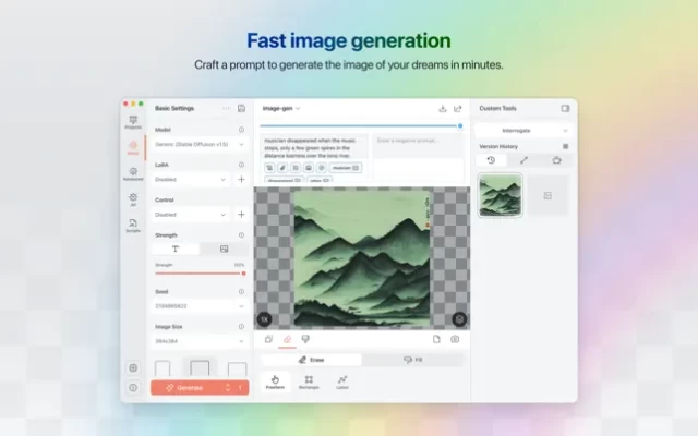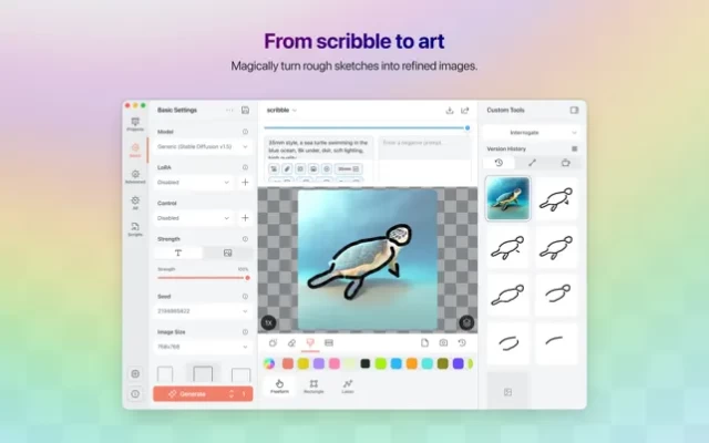 Draw Things is a AI-assisted image generation tool to help you create images you have in mind in minutes rather than days. Master the cast spells and your Mac will draw what you want with a few simple words. Draw Things runs locally on your phone to protect your privacy.