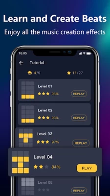 Đối với những người nghiệp dư tạo beat, Drum pad cung cấp hướng dẫn các bài hát để bạn có thể thành thạo bộ beat chỉ trong vài phút. Nâng cấp các cấp độ khó mang lại cho giáo sư niềm vui không giới hạn từ thử thách. Nào, hãy đặt cược vào phẩm giá của bạn với tư cách là một nhạc sĩ chuyên nghiệp và thử thách các trò chơi đệm trống đến cùng!