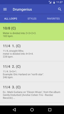 Download the app for FREE and use the PREVIEW FUNCTION for listening to all the loops before deciding to download them. You have at disposal three free loops to download from the list of 500 LOOPS TOTAL, so you can test the player functions and enjoy the practice with Drumgenius. Then, if you like it, on "Store" section, you can buy loops, having available three options: 10 Credits, 50 Credits and Infinite Credits. Each credit lets you download one loop at your choice from the complete list.
