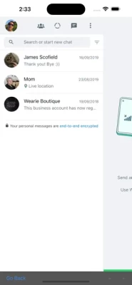 Using Dual Messenger, you may have a second WhatsApp Account on your phone. Just start Dual Messenger and Tap Go, and after you read the QR shown from the device you will have your account logged in, your chat screen will simply open and you may use it just as you are on a desktop client.