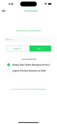 Using Dual Messenger App, you may also stay online on WhatsApp as long as you want without an effort. All you need to do is to either select one of the platforms over the quick links or enter the url for other chat app or any other location you want to stay online and tap the button 'Go'. A browser window will open and you will be navigated to the login screen of the service. Login as you would login on any other desktop environment. And after you are logged-in, you may just swipe up and switch to other apps or lock your screen and leave the your phone away. You will stay online until you tap the button 'Done' or stop the app.