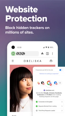 Escape Website Trackers Before They Load – Automatically stop most hidden trackers (3rd-party scripts) from loading, which prevents companies from collecting and using any personal data from these trackers. Stay secure with our cutting-edge tracker-blocking technology – 3rd-Party Tracker Loading Protection, which goes above and beyond what you get in most popular web browsers by default.